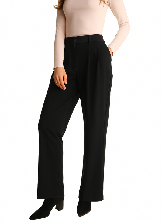 Spodnie z zakładkami z prostą nogawką | TAVO | czarne