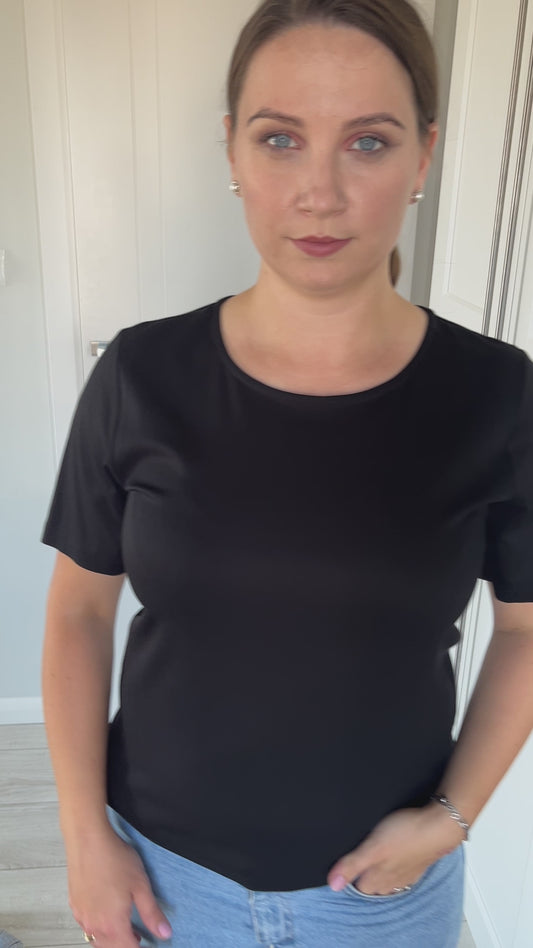 Bluzka Longsleeve Bambusowy z asymetrycznym dekoltem | LUVA | czarna