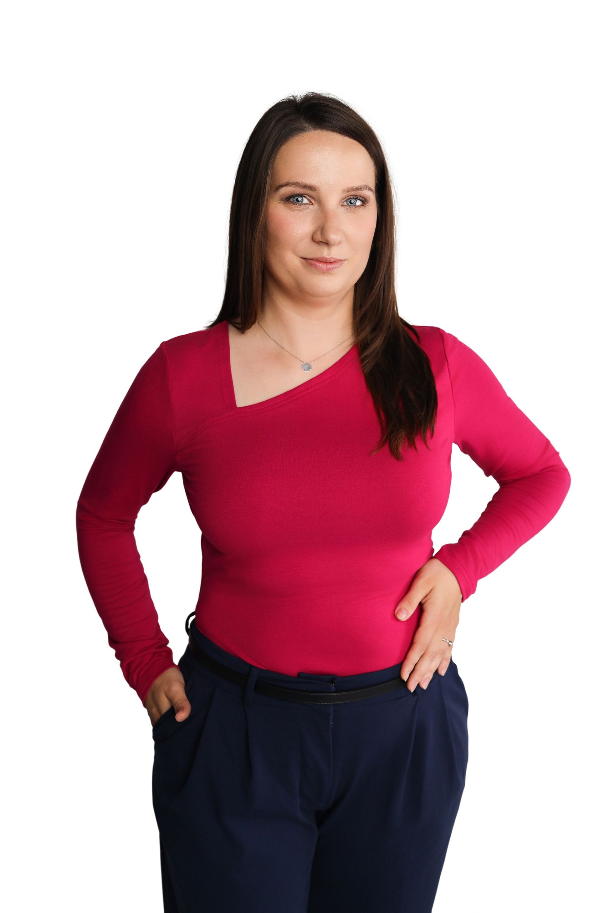 Bluzka Longsleeve Bambusowy z Asymetrycznym Dekoltem| LUVA | fuksja
