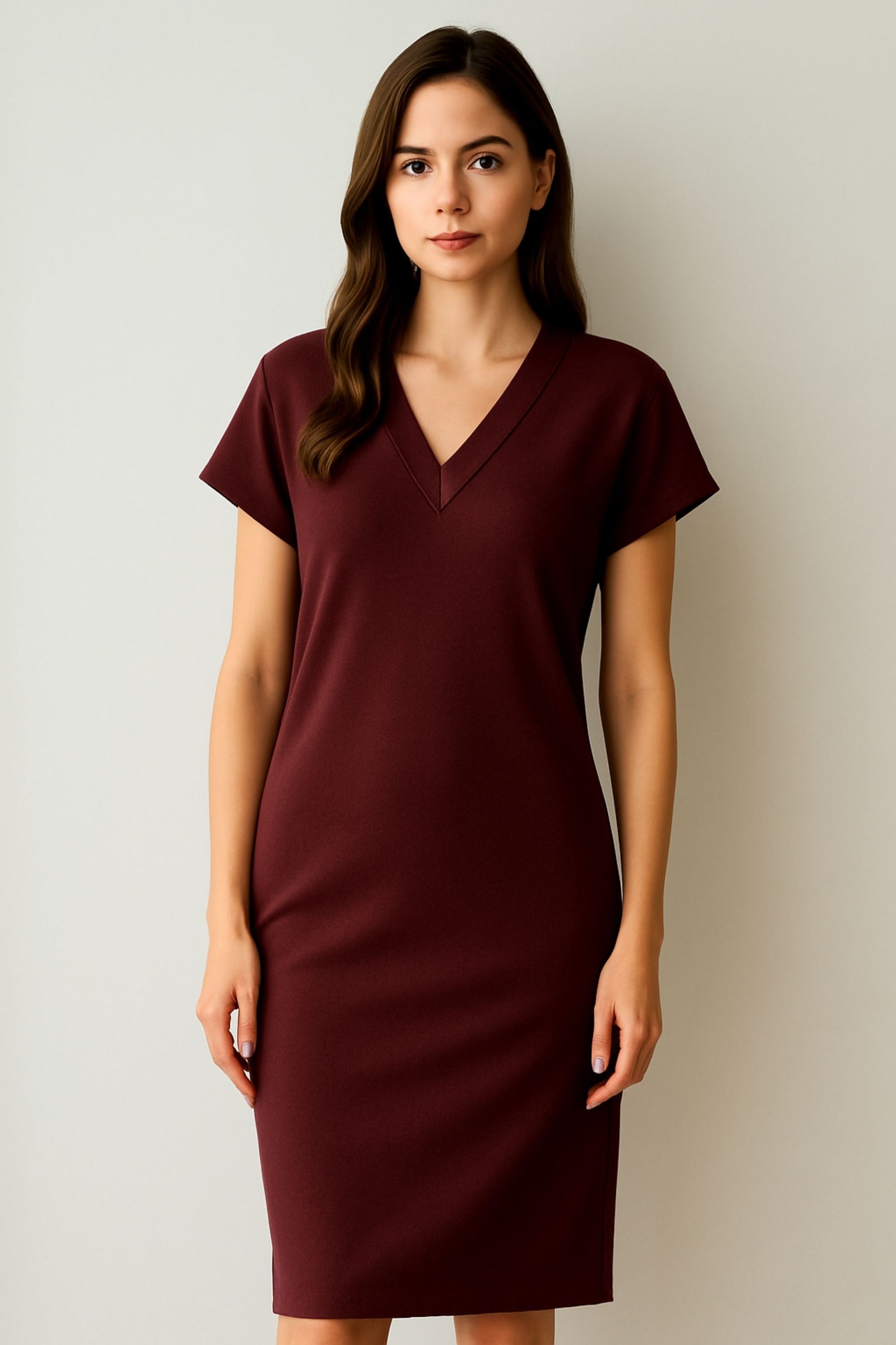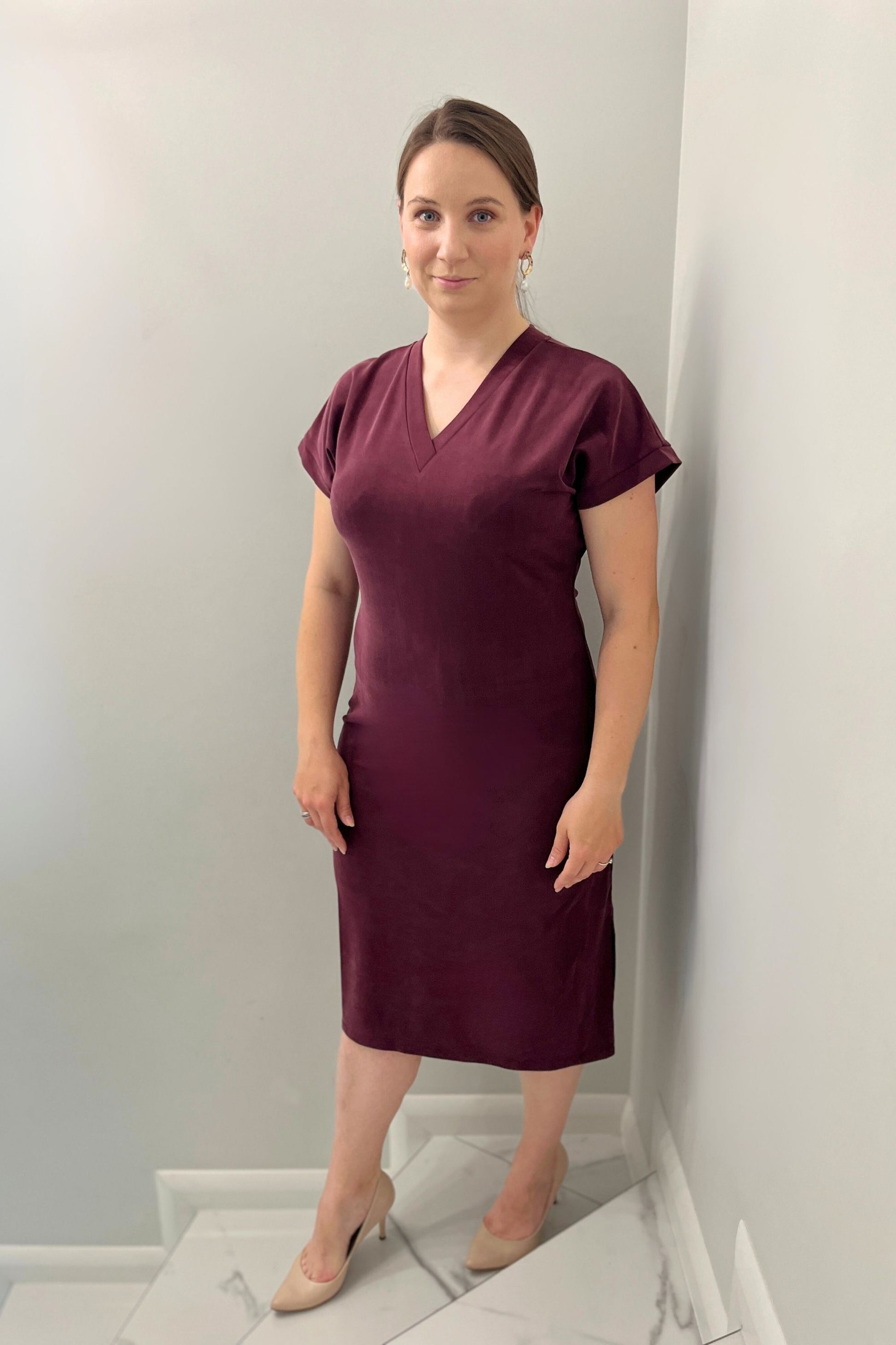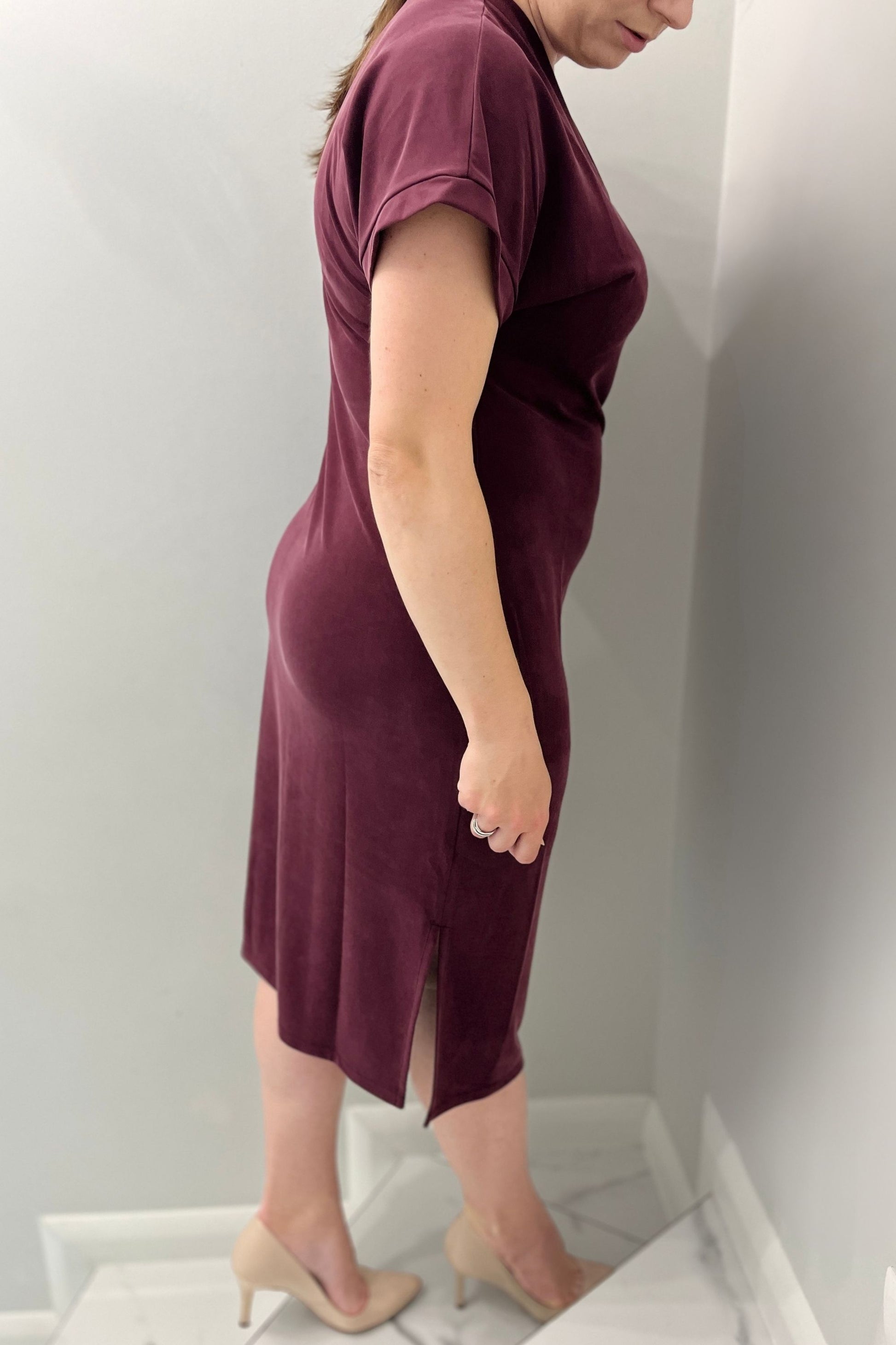 Sukienka midi z rozporkami| MIRA | bordo