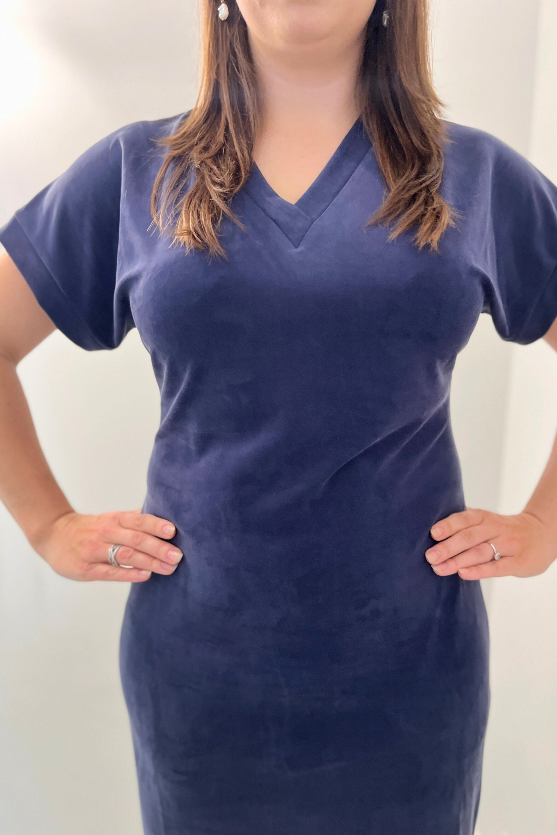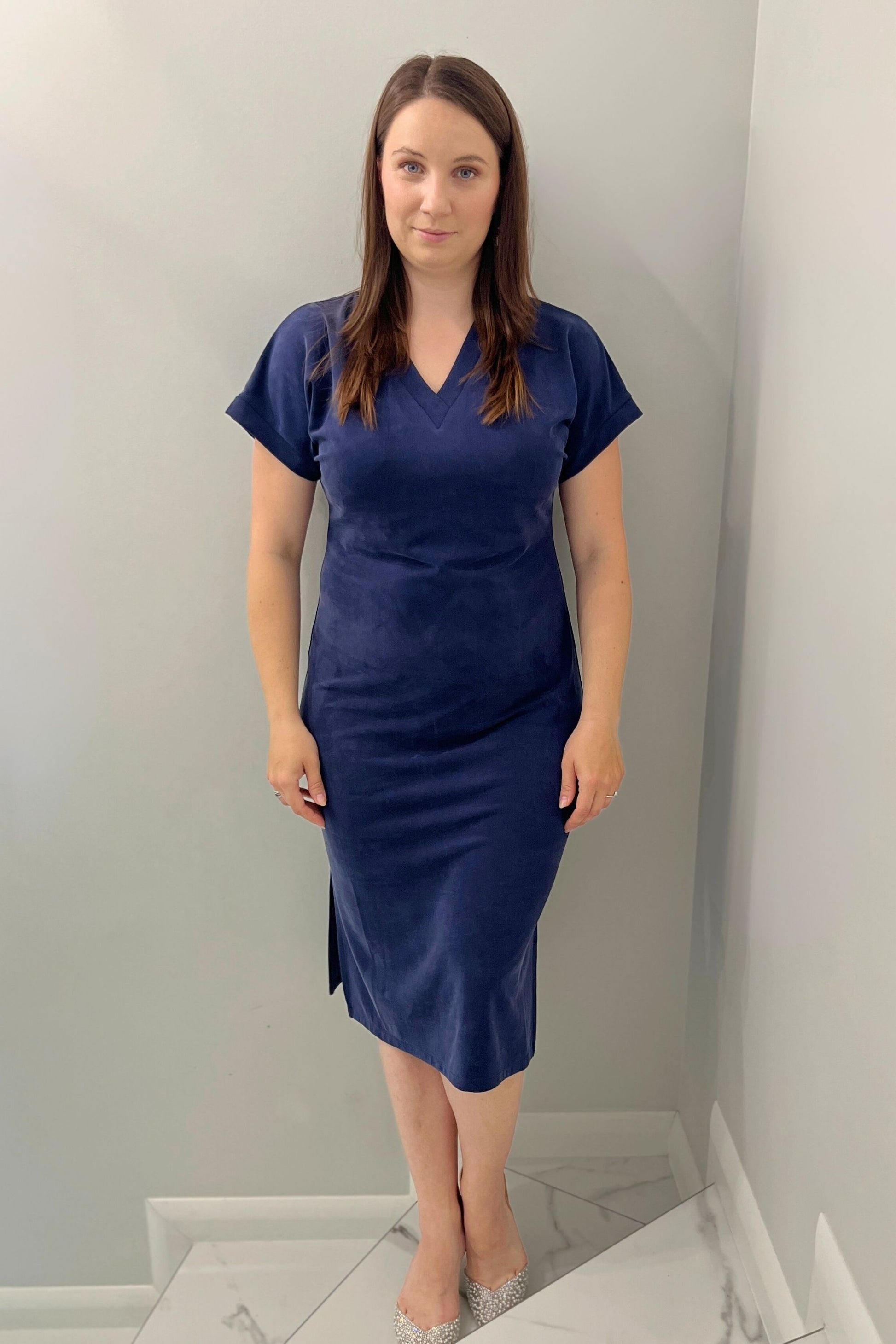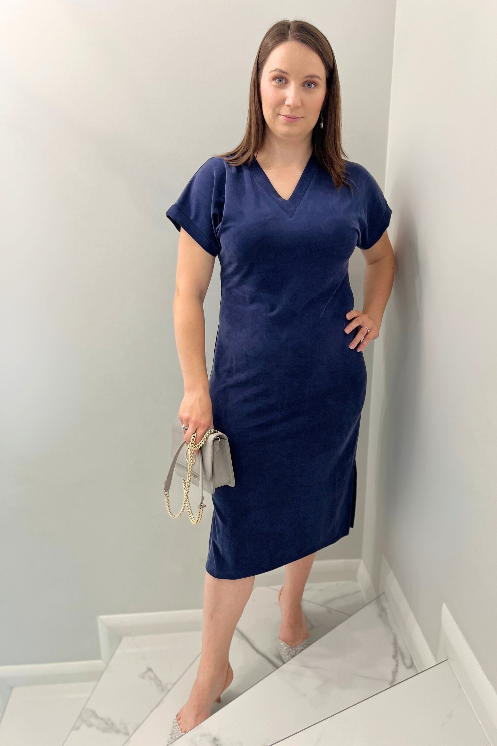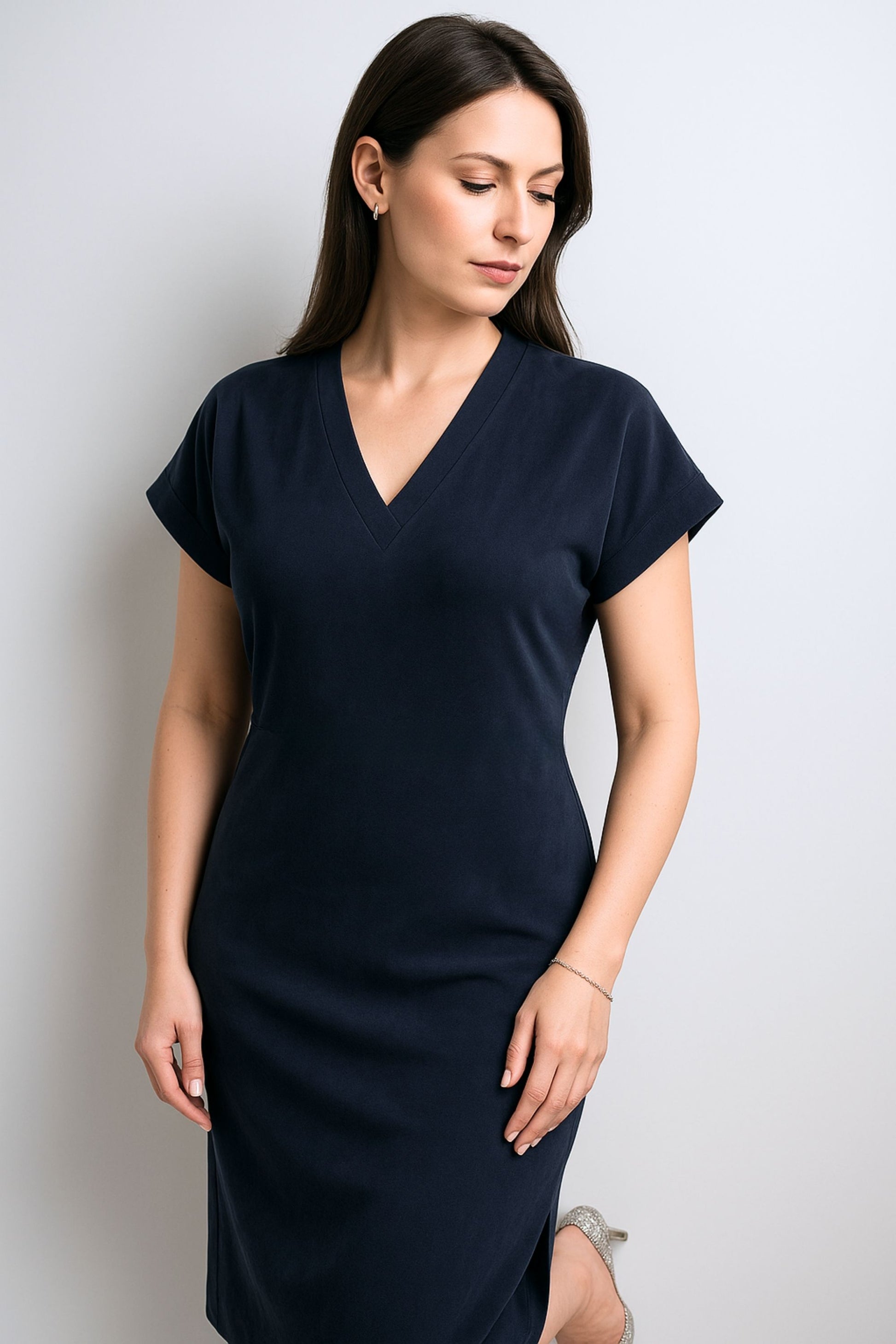 Jej V-dekolt wysmukla szyję i podkreśla linię obojczyków, a dwa rozporki po bokach dodają lekkości i swobody ruchu. To właśnie te detale sprawiają, że jest tak wyjątkowa – kobieca, ale nie oczywista. Rękawy delikatnie opadające,subtelnie otulają ramiona, dodając sylwetce lekkości.
